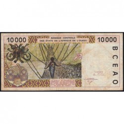 Avers : Bâtiment du siège social de la BCEAO à Dakar, chef traditionnel béninois avec sa canne surmontée d'un oiseau