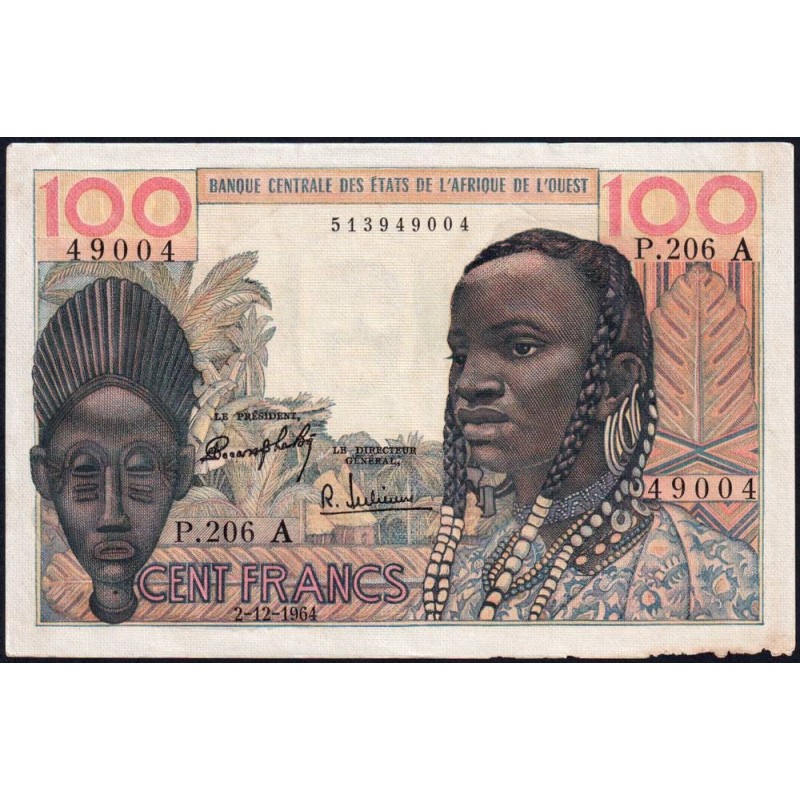 Côte d'Ivoire - Pick 101Ad - 100 francs - Série P.206 - 02/12/1964 - Etat : TTB