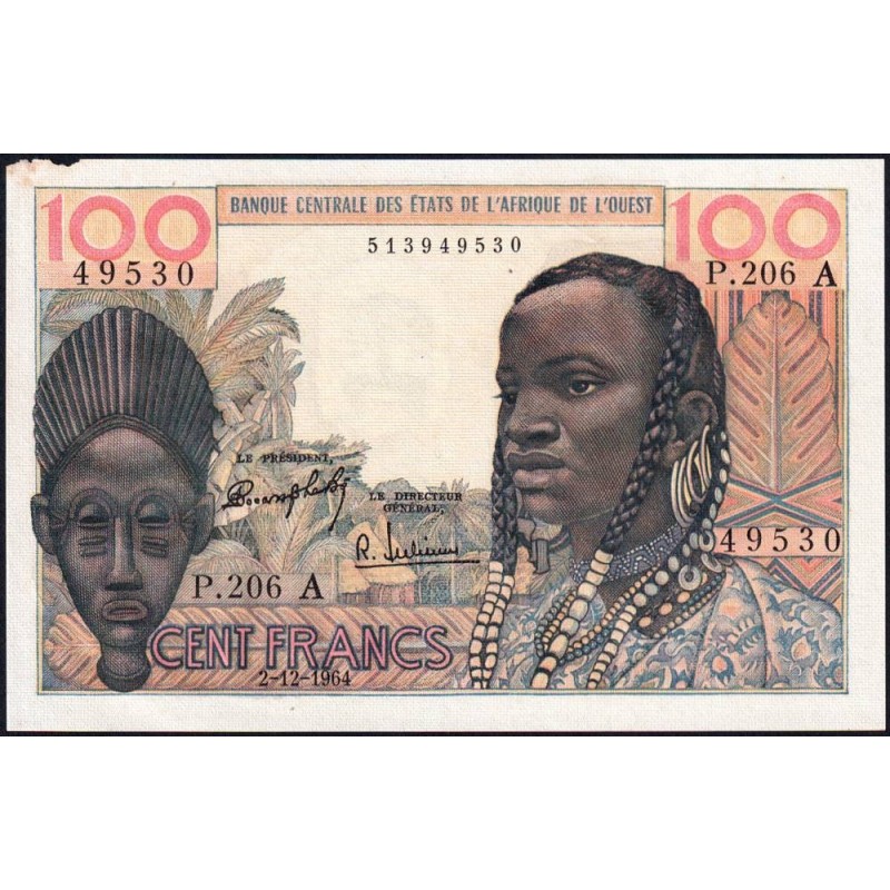 Côte d'Ivoire - Pick 101Ad - 100 francs - Série P.206 - 02/12/1964 - Etat : TTB