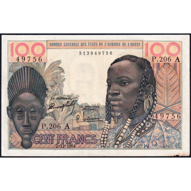 • Côte d'Ivoire - Pick 101Ad - 100 francs - Série P.206 - 02/12/1964 - Etat : TTB+
