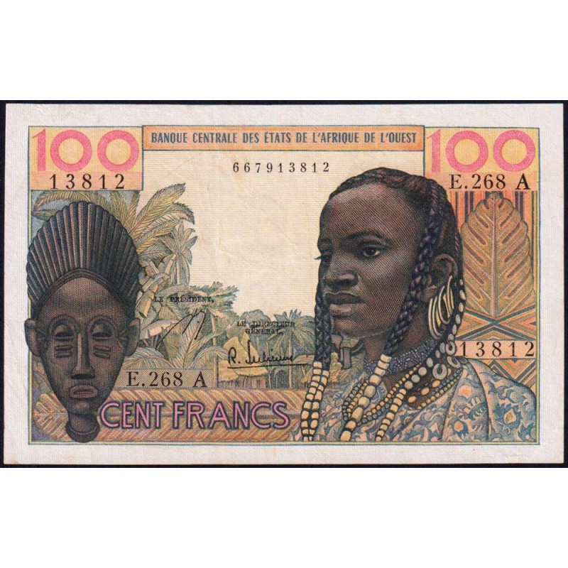 • Côte d'Ivoire - Pick 101Ag - 100 francs - Série E.268 - Sans date (1966) - Etat : TTB+