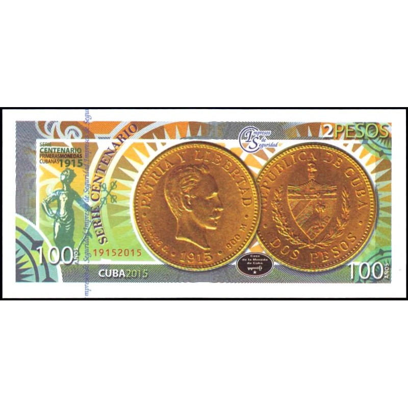 • Cuba - 2 pesos or - Centenaire premières monnaies cubaines - 2015 - Etat : NEUF