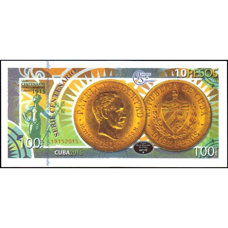 • Cuba - 10 pesos or - Centenaire premières monnaies cubaines - 2015 - Etat : NEUF