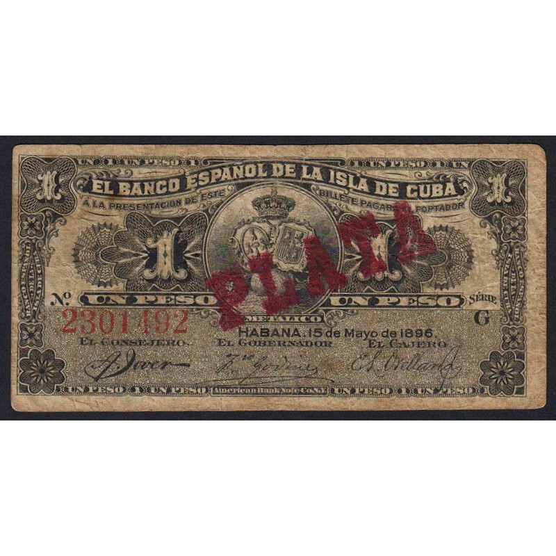 Avers : Armoiries de La Havane posée sur un globe avec à gauche une corne d'abondance, de l'Espagne posée aussi sur un globe avec à droite un caducée, règle et compas, l'ensemble surmonté de la couronne d'Espagne