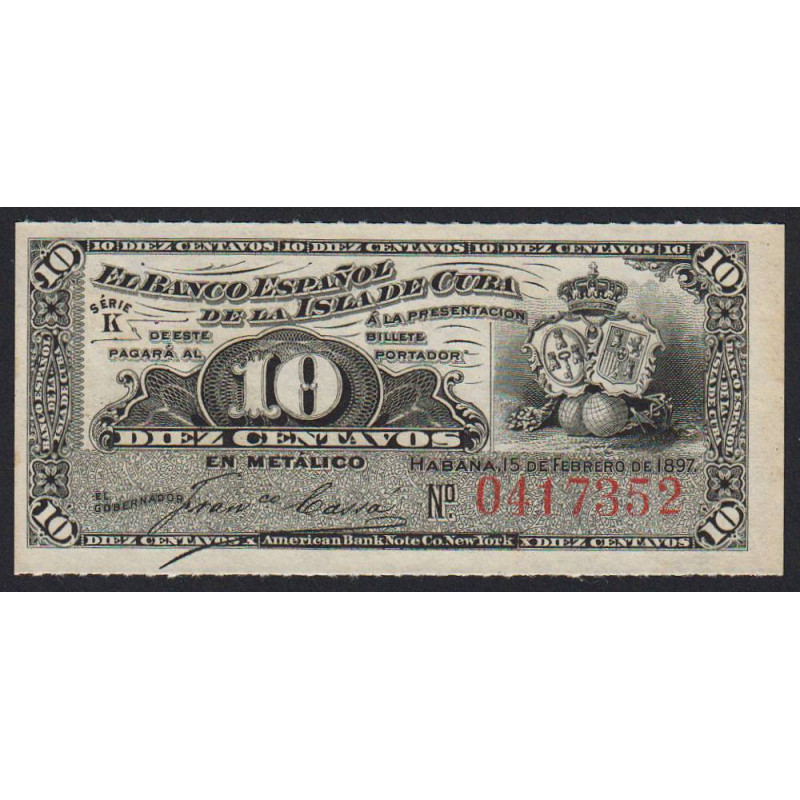 • Cuba - Pick 52a - 10 centavos - Série K - 15/02/1897 - Etat : NEUF