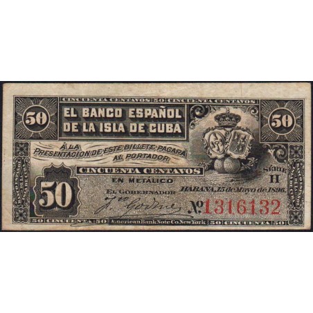 Cuba - Pick 46a - 50 centavos - Série H - 15/05/1896 - Etat : TTB+
