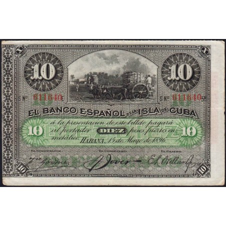 • Cuba - Pick 49d_1 - 10 pesos - Série E - 15/05/1896 - Etat : TTB+