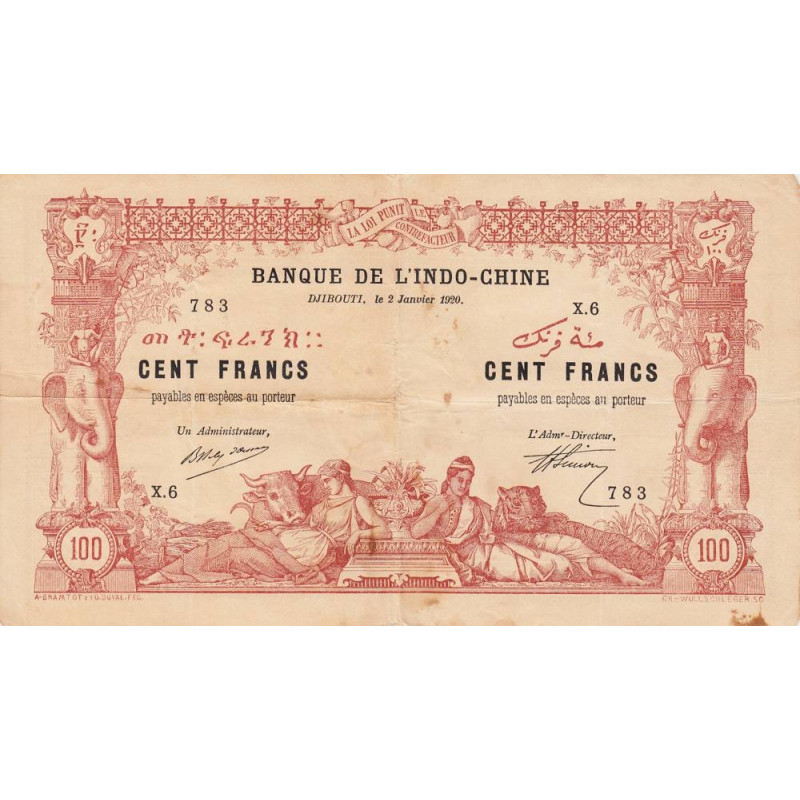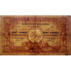 Revers : Article 139 du code pénal à l'intérieur des cadres carrés, lignes de texte BANQUE DE L'INDO-CHINE répétées en continu à l'intérieur des cadres rectangulaires