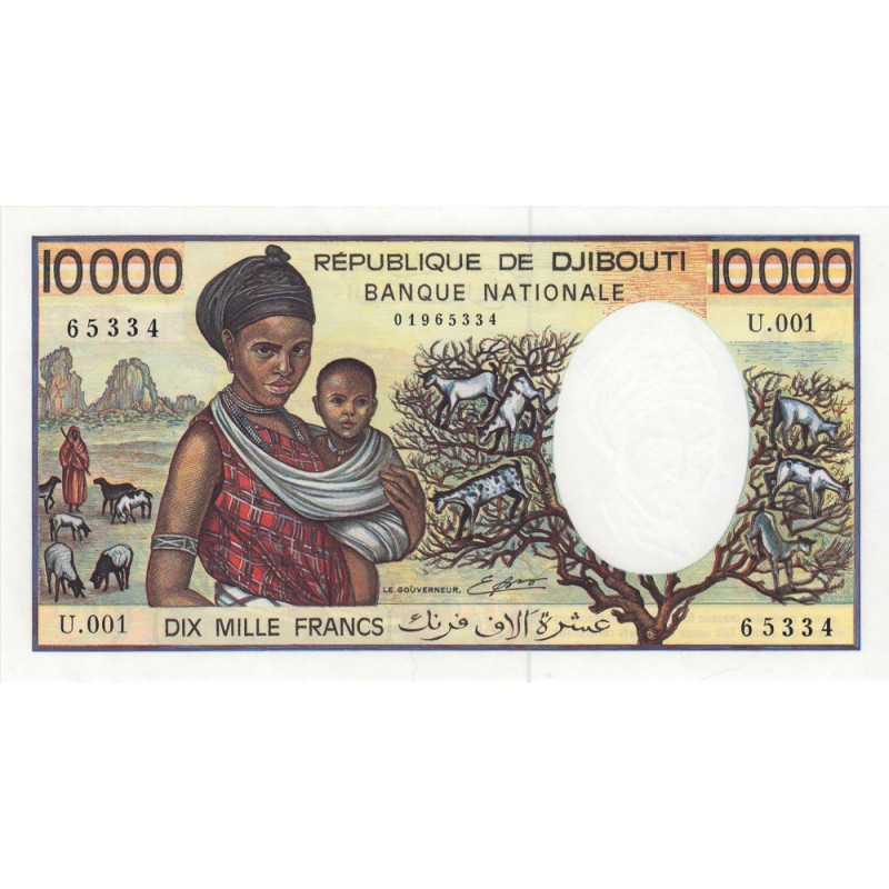 Revers : Vue aérienne du port de Djibouti, poissons-papillons
