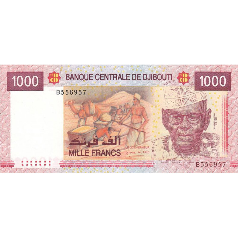 Avers : Portrait de Ali Ahmed Oudoum (1913-1988) membre actif du Front de libération de la Côte des Somalis, ramassage du sel à proximité du lac Assal