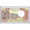 Avers : Jeune femme avec sa coiffure traditionnelle, trains et promeneurs le long des rails