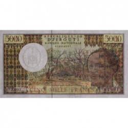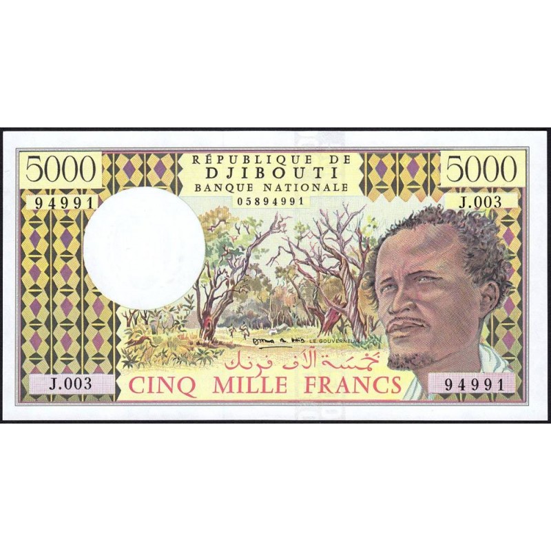Avers : Tête d'un homme de Djbouti, deux personnes circulant entre des arbres