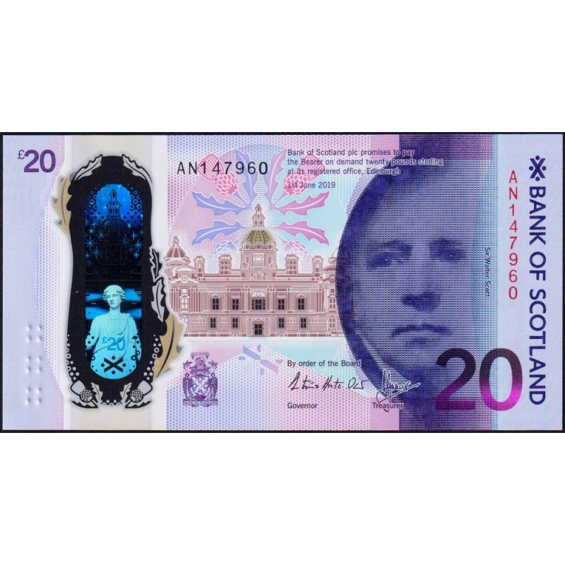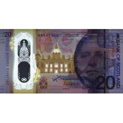 Avers : Portrait de l'écrivain et historien écossais Sir Walter Scott (1771-1832), siège social de la Banque d'Ecosse à Édimbourg