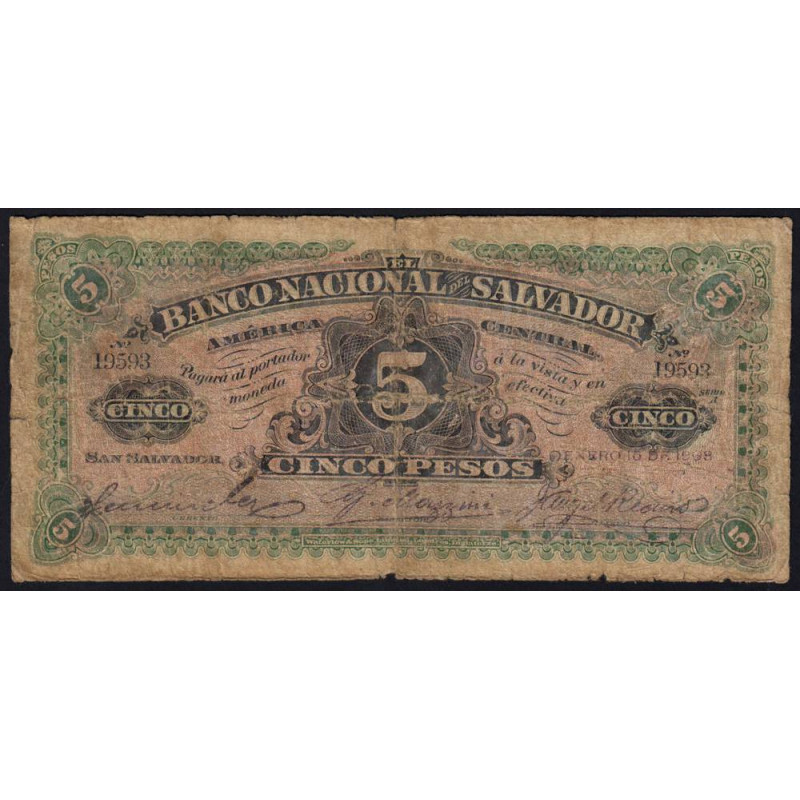 El Salvador - Pick S 162b - 5 pesos - Série A - 16/01/1908 - Etat : B-