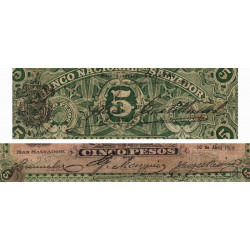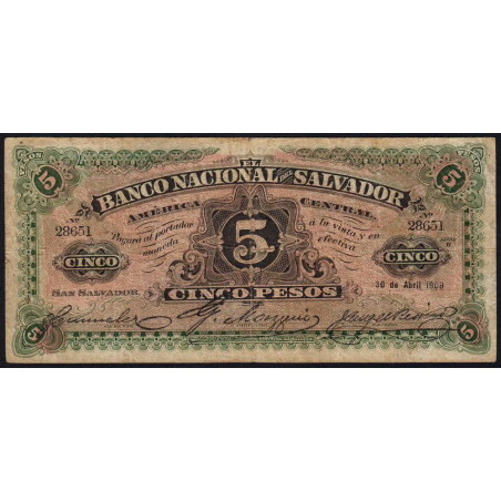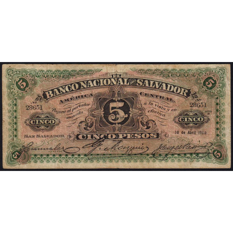 El Salvador - Pick S 162c - 5 pesos - Série B - 30/04/1909 - Etat : TB-
