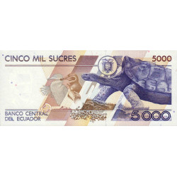 • Equateur - Pick 128c2 - Série AÑ - 5'000 sucres - 26/03/1999 - Etat : NEUF