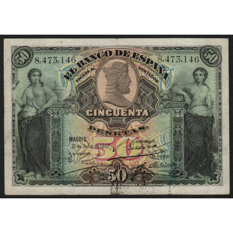 Espagne - Pick 63a - 50 pesetas - 15/07/1907 - Etat : TB+