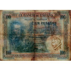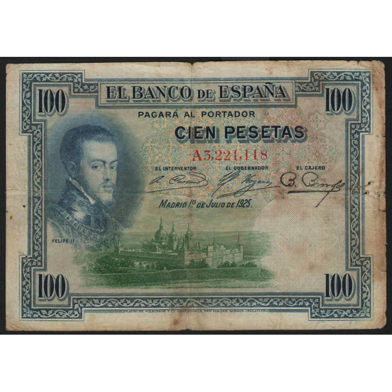 Espagne - Pick 69a - 100 pesetas - 01/07/1925 - Série A - Etat : B+
