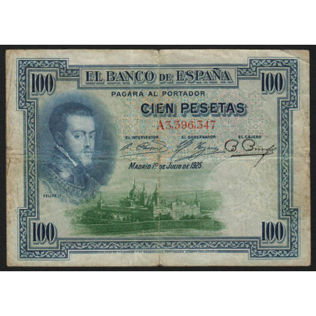 Espagne - Pick 69a - 100 pesetas - 01/07/1925 - Série A - Etat : TB-