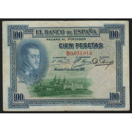 Espagne - Pick 69a - 100 pesetas - 01/07/1925 - Série B - Etat : TB+