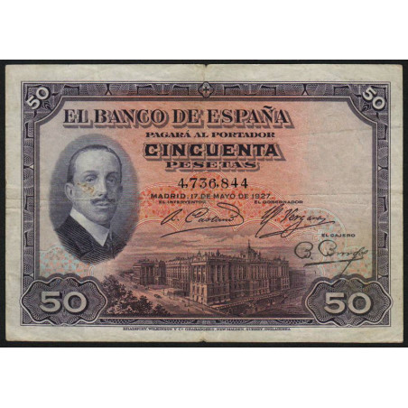 Espagne - Pick 72a - 50 pesetas - 17/05/1927 - Sans série - Etat : TB+