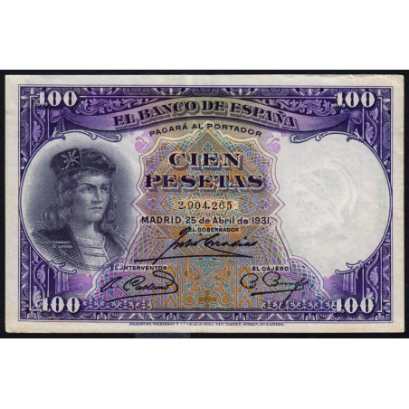 Espagne - Pick 83 - 100 pesetas - 25/04/1931 - Sans série - Etat : SUP