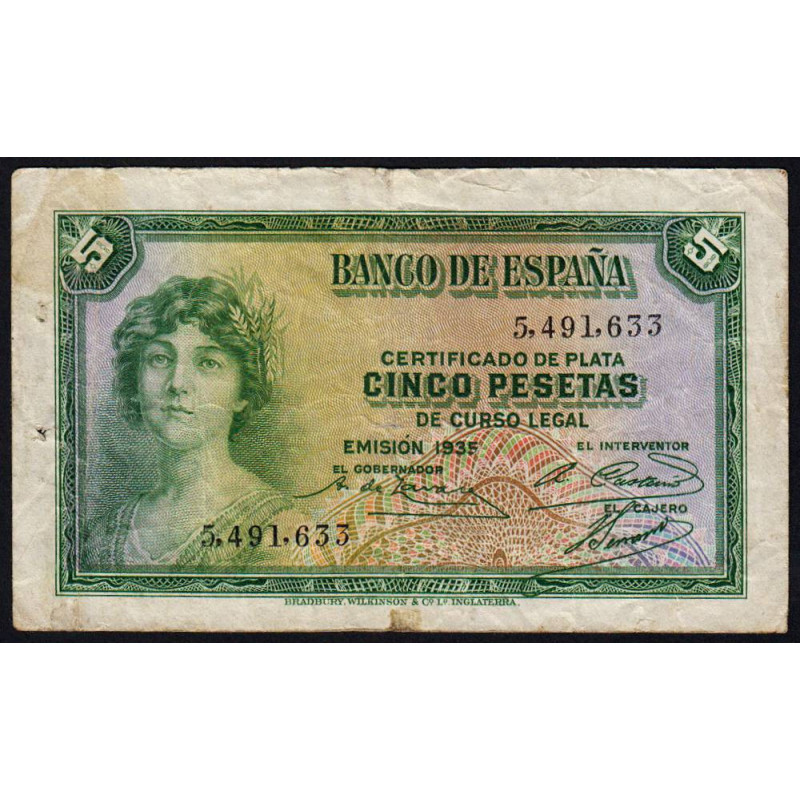 Espagne - Pick 85 - 5 pesetas - 1935 - Sans série - Etat : TB+