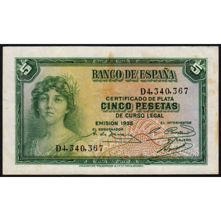 Espagne - Pick 85 - 5 pesetas - 1935 - Série D - Etat : TTB