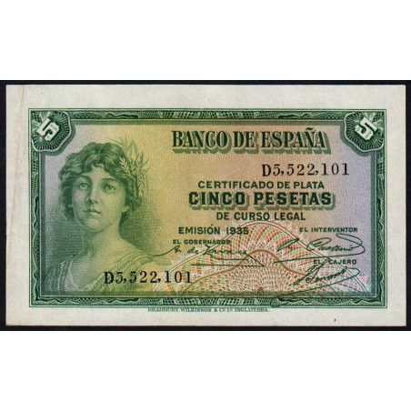 Espagne - Pick 85 - 5 pesetas - 1935 - Série D - Etat : TTB+