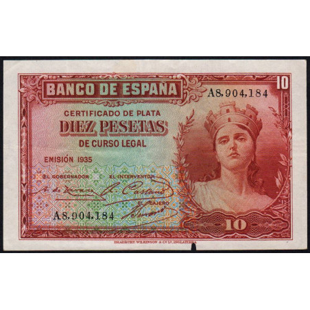 Espagne - Pick 86 - 10 pesetas - 1935 - Série A - Etat : TTB+