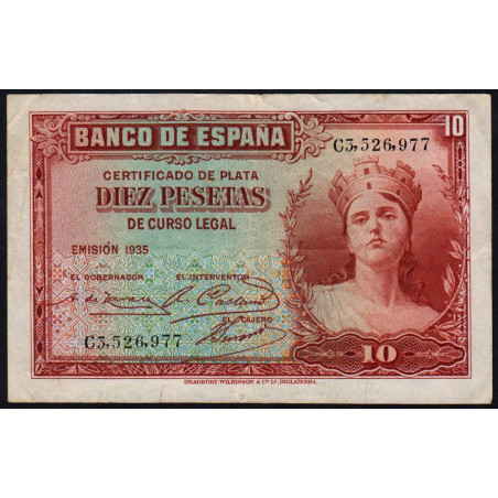 Espagne - Pick 86 - 10 pesetas - 1935 - Série C - Etat : TTB