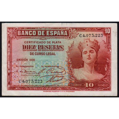 Espagne - Pick 86 - 10 pesetas - 1935 - Série C - Etat : TTB+