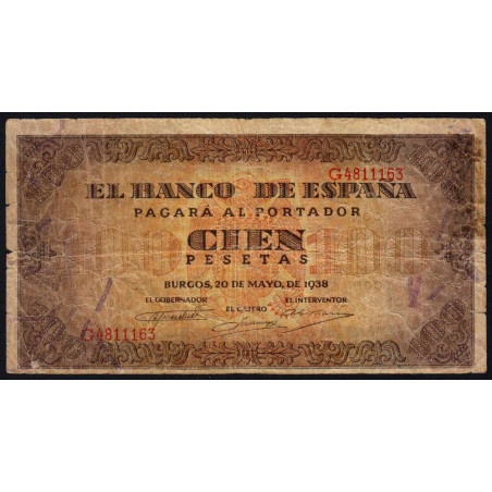 Espagne - Pick 113 - 100 pesetas - 20/05/1938 - Série G - Etat : B