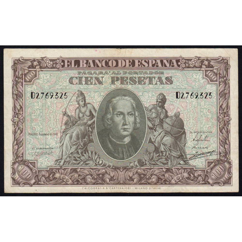 Espagne - Pick 118 - 100 pesetas - 09/01/1940 - Série D - Etat : TTB