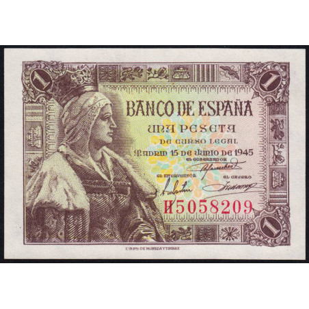 Espagne - Pick 128 - 1 peseta - 15/06/1945 - Série H - Etat : NEUF