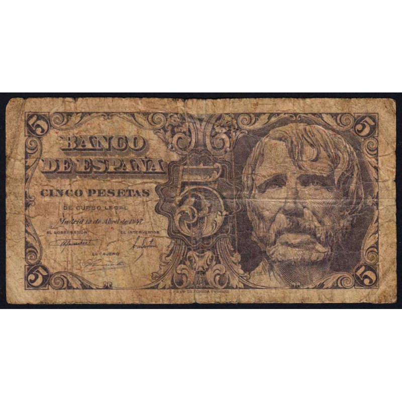 Espagne - Pick 134 - 5 pesetas - 12/04/1947 - Sans série - Etat : AB