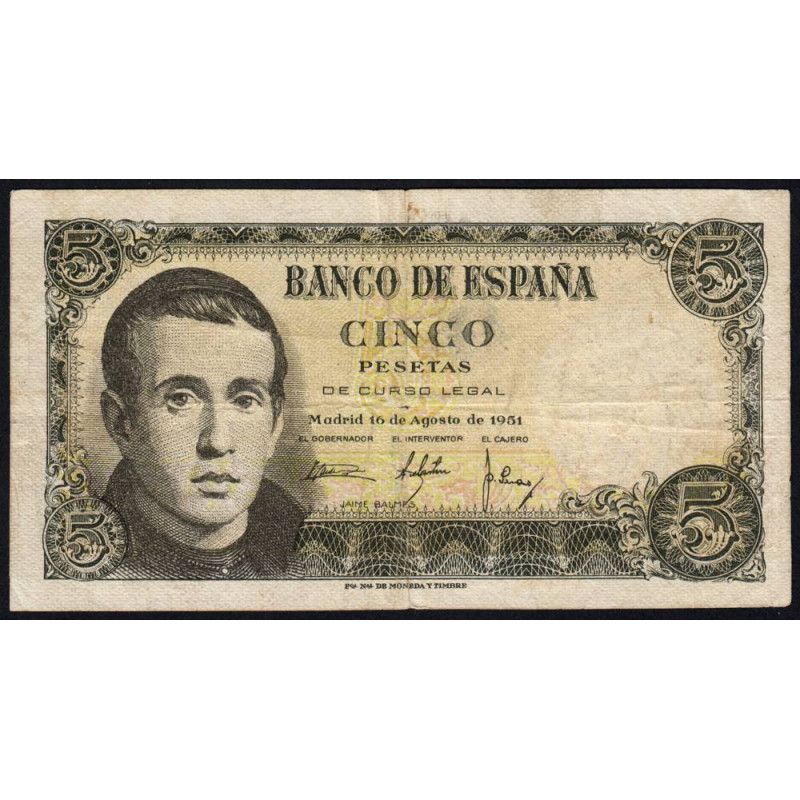 Espagne - Pick 140 - 5 pesetas - 16/08/1951 - Série 1B - Etat : TB+