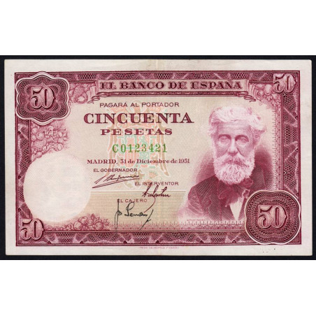 Espagne - Pick 141 - 50 pesetas - 31/12/1951 - Série C - Etat : SUP