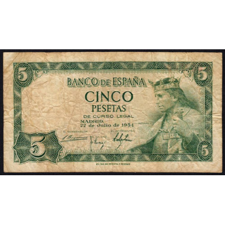 Espagne - Pick 146 - 5 pesetas - 22/07/1954 - Série G - Etat : TB-