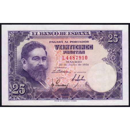 Espagne - Pick 147 - 25 pesetas - 22/07/1954 - Série L - Etat : NEUF