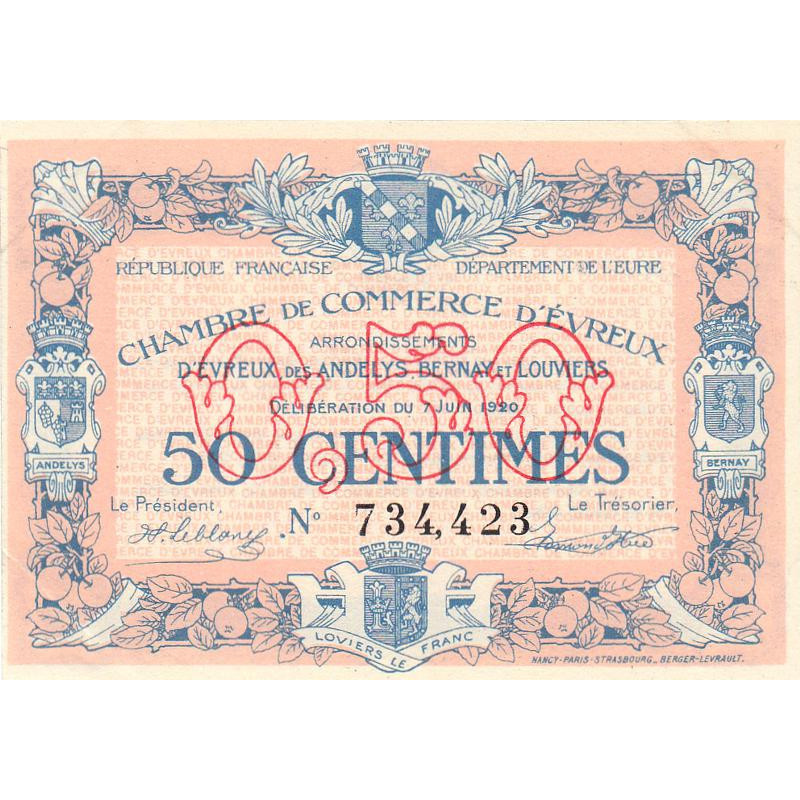 • Evreux (Eure) - Pirot 57-16 - 50 centimes - 07/06/1920 - Etat : SUP+