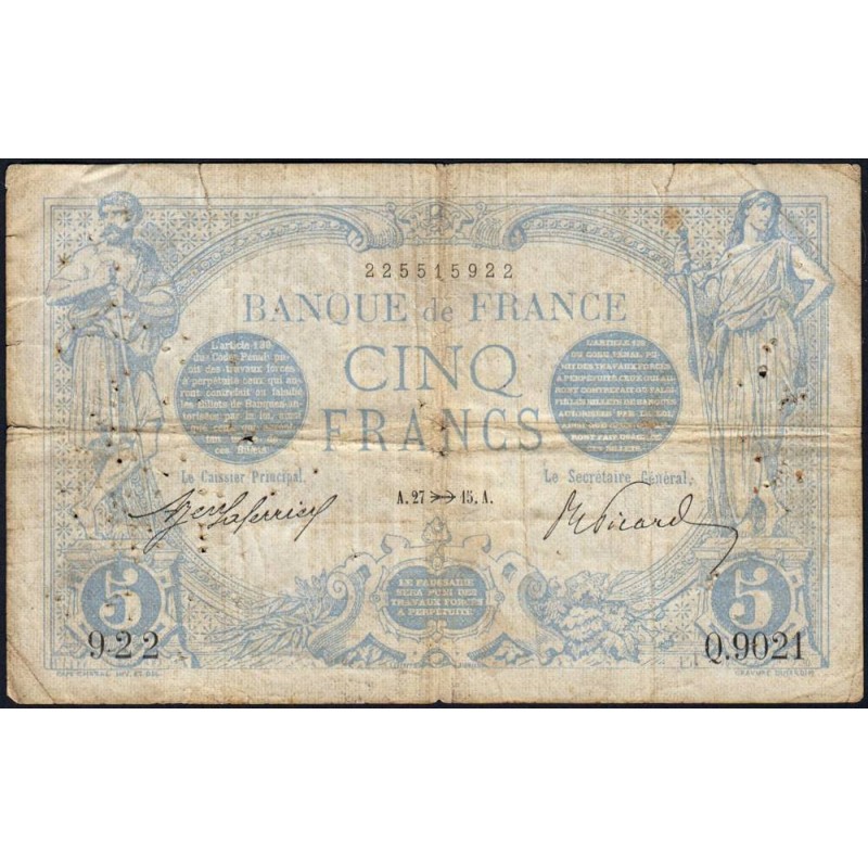 5 francs bleu - Type 1905