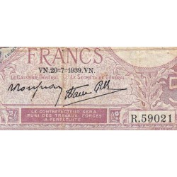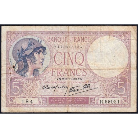 F 04-02 - 20/07/1939 - 5 francs - Violet modifié - Série R.59201 - Etat : TB-