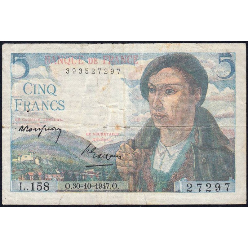 F 05-07 - 30/10/1947 - 5 francs - Berger - Série L.158 - Etat : TB+