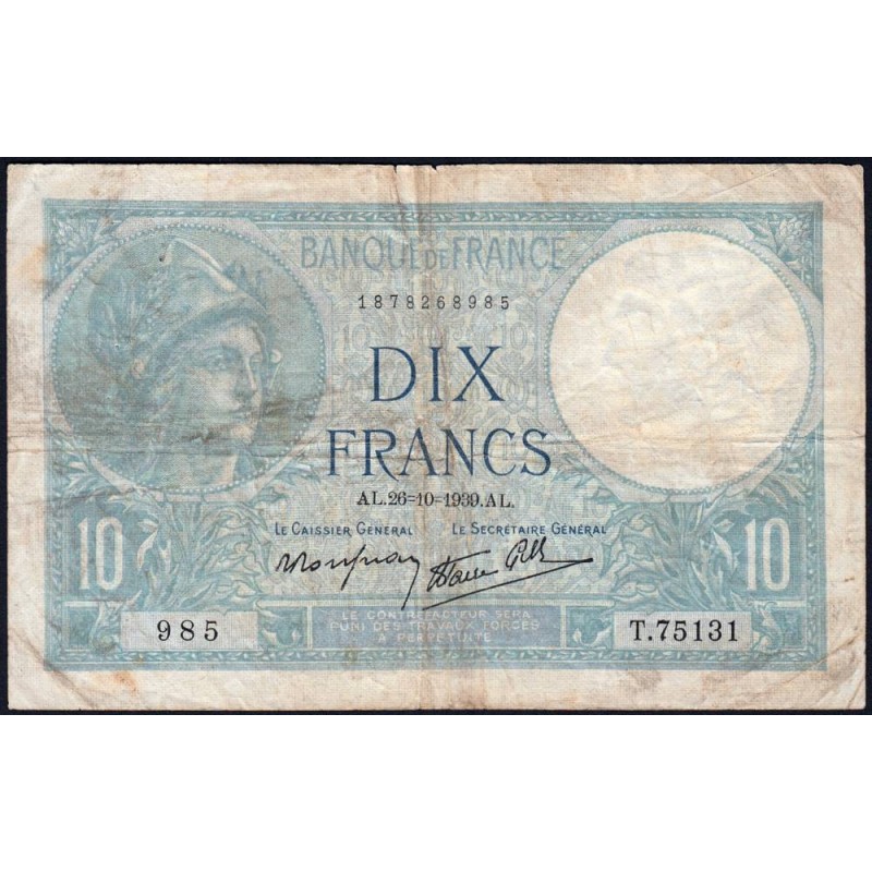 F 07-13 - 26/10/1939 - 10 francs - Minerve modifié - Série T.75131 - Etat : TB-