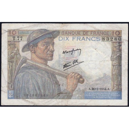 F 08-11 - 20/01/1944 - 10 francs - Mineur - Série T.77 - Etat : TB
