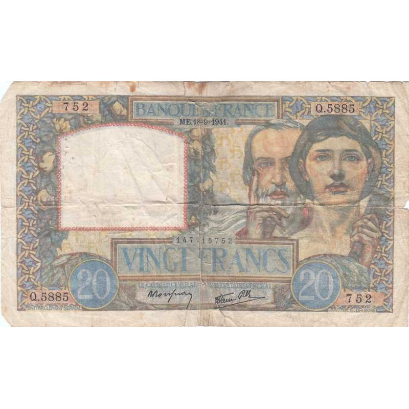 • F 12-18 - 18/09/1941 - 20 francs - Science et Travail - Série Q.5885 - Etat : B-