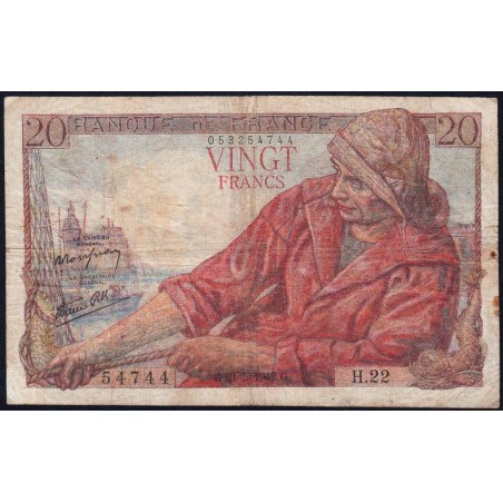 • F 13-02 - 21/05/1942 - 20 francs - Pêcheur - Série H.22 - Etat : TB-