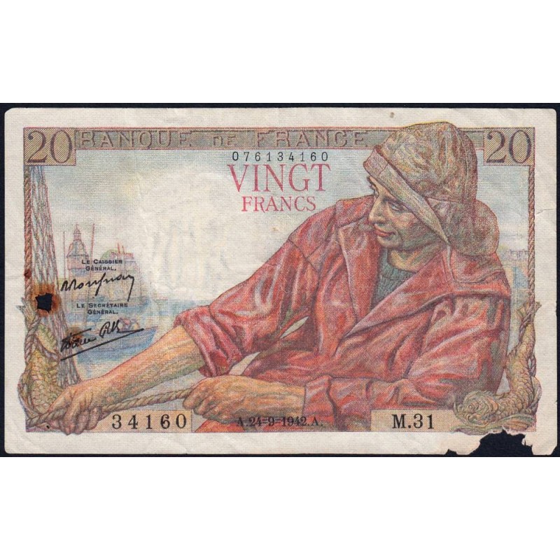 F 13-03 - 24/09/1942 - 20 francs - Pêcheur - Série M.31 - Etat : AB