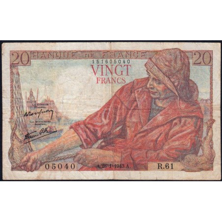 F 13-05 - 28/01/1943 - 20 francs - Pêcheur - Série R.61 - Etat : TB
